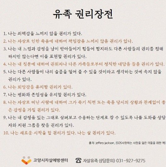 박선영 센터장은 “자살유족은 누구보다 도움이 필요하지만 지원을 받기 어려운 경우가 많다”며 “자조모임을 통해 서로 공감하고 회복하는 경험을 하길 바라며 많은 유족의 참여를 바란다”고 말했다.