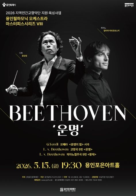 (중부시사신문) 용인문화재단은 오는 5월 15일 오후 7시 30분 용인포은아트홀에서 ‘2026년 지역민간교향악단 지원·육성사업’의 첫 공연으로 용인필하모닉오케스트라의 기획공연 '마스터피스 시리즈 Ⅷ - 베토벤 ‘운명’'을 선보인다.