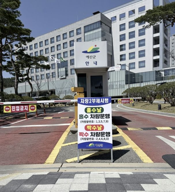 (중부시사신문) 예산군은 중동 사태 장기화에 따른 원유 수급 불안에 대응하고 에너지 절약을 통한 자원안보 위기 극복을 위해 공공기관 ‘승용차 2부제’를 시행한다고 밝혔다.