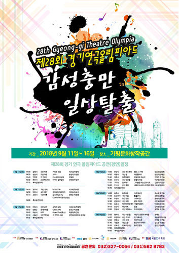 9월 7~8일 양일간에는 사랑과 전쟁, 예술에 관해 광대들이 풀어내는 ‘환상동화’에 이어 11일부터는 제28회 경기연극 올림피아드 대회가 막이 오른다.
