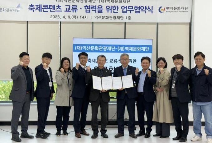 익산문화관광재단에서 진행된 이번 협약은 양 재단이 축제콘텐츠의 적극적인 개방과 공유, 경영 전반에 대한 교류·협력을 통해 축제 활성화와 운영 경쟁력 강화를 도모하고자 마련됐다.