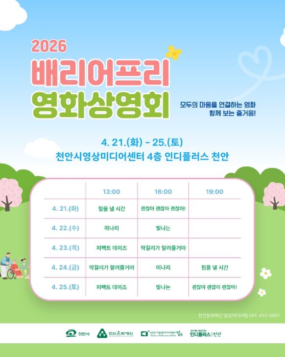 (중부시사신문) 천안문화재단은 이달 21~ 25일 천안시영상미디어센터에서 ‘배리어프리 영화상영회’를 운영한다고 14일 밝혔다.