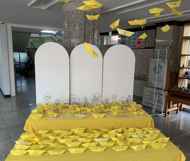전시에는 학생들의 진심 어린 글이 담긴 종이배가 놓이고, 일부는 천장에 매달려 바람에 흔들리듯 연출되어 ‘기억이 이어진다’는 상징성을 표현했다. 이를 통해 학생들은 단순한 추모를 넘어 서로의 삶을 존중하고 지키겠다는 다짐을 공유했다.