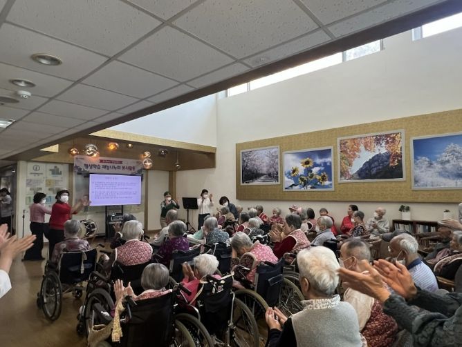 (중부시사신문) 용인특례시는 평생학습관 재능나누미 교육 수강생들이 16일 처인구 역북동에 있는 대한간호노인요양원을 찾아 노인들을 대상으로 인지기능 향상을 위한 프로그램을 진행했다고 17일 밝혔다.