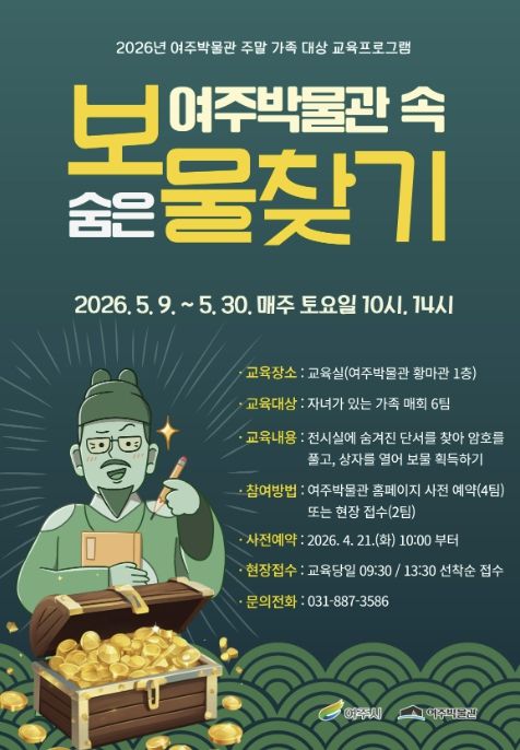 (중부시사신문) 여주시 여주박물관은 가정의 달 5월을 맞아 가족이 함께 지역 문화유산의 가치를 즐겁게 배우고 체험할 수 있는 ‘여주박물관 속 숨은 보물찾기’를 운영한다.