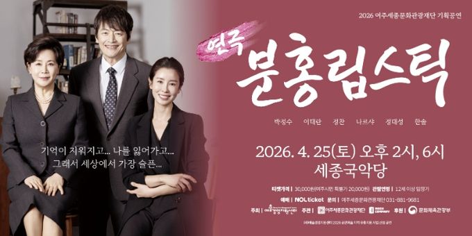 (중부시사신문) 여주세종문화관광재단이 오는 4월 25일, 예술경영지원센터의 공모사업인 '공연예술 지역 유통지원 사업'의 일환으로 베테랑 배우들이 참여한 창작 연극‘분홍립스틱’을 세종국악당에서 개최한다.