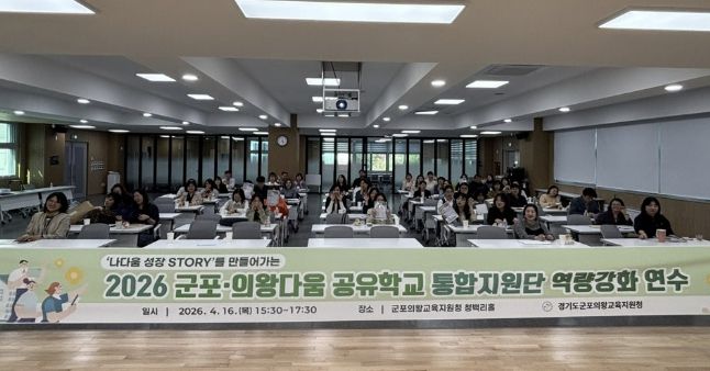 (중부시사신문) 군포의왕교육지원청은 2026년 군포의왕다움 공유학교 운영의 내실화를 위해 4월 16일 ‘통합 지원단 역량강화 워크숍’을 운영하며, 지역 기반 교육 혁신을 선도할 전문 지원체계 구축에 나선다.