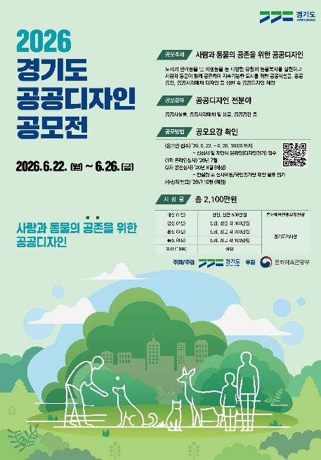 (중부시사신문) 경기도가 ‘사람과 동물의 공존을 위한 공공디자인’이란 주제로 제20회 ‘2026년 경기도 공공디자인 공모전’을 6월 22일부터 26일까지 개최한다.