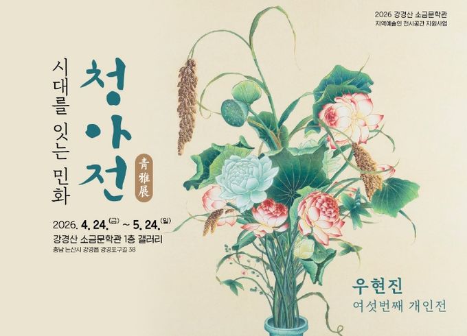 첫 번째로 개최되는 우현진 작가의 한국 전통 민화 전시는 전통 민화가 지닌 상징성과 의미를 오늘의 감각으로 다시 바라보고, 과거와 현재를 하나의 화면 안에서 이어가는 ‘시대를 잇는’ 작품들로 구성된다. 전시는 2026년 4월 24일(금)부터 5월 26일(화)까지 강경산소금문학관 지하 1층 갤러리에서 진행되며, 매주 월요일은 휴관이다.