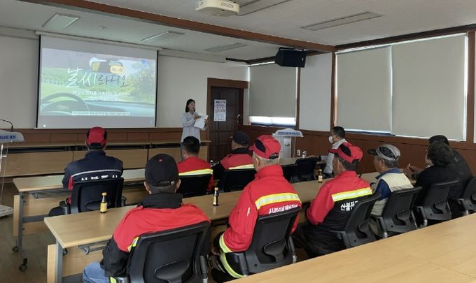이번 교육에서는 봄철 졸음운전으로 인한 교통사고 예방 행동요령과 차량 운행 시 준수해야 할 교통안전 수칙을 안내했으며, 환경정비 업무 시 사용하는 청소 도구와 장비의 올바른 사용 방법, 작업 중 발생할 수 있는 위험요인 대응 요령 등을 교육해 현장 안전 대응 능력을 높였다.