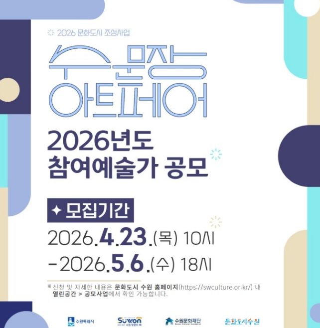 (중부시사신문) 수원문화재단은 지역 예술가의 작품 판로 확대와 지속가능한 창작 활동 기반 마련을 위해 2026년 ‘수문장 아트페어’ 참여 예술가를 모집한다.
