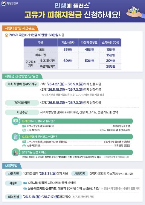 이번 지원금은 고유가·고환율·고물가로 어려움을 겪는 시민들의 생활 안정을 돕고, 지역 내 소비를 촉진해 소상공인과 자영업자의 매출 회복에도 힘을 보태기 위한 조치다.