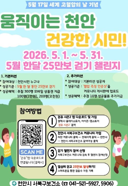 (중부시사신문) 천안시 서북구보건소는 5월 한 달간 ‘움직이는 천안, 건강한 시민!’ 걷기 챌린지를 운영한다고 20일 밝혔다.