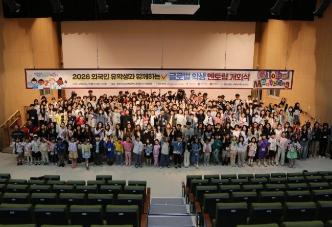 (중부시사신문) 천안시청소년재단 산하 천안시청소년복합커뮤니티센터가 지난 18일 센터 대공연장에서 ‘2026 외국인 유학생과 함께하는 글로벌 학생 멘토링’ 개회식을 성황리에 개최했다.