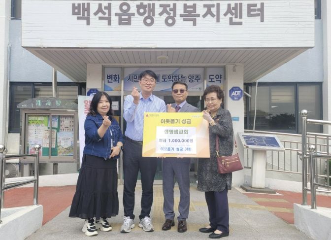 (중부시사신문) 양주시 백석읍은 지난 17일 생명샘교회가 지역 내 어려운 이웃을 돕기 위한 성금 100만 원을 기탁했다고 밝혔다.