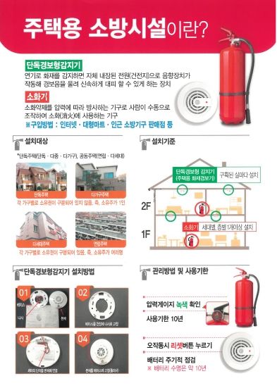 이에 따라 천안서북소방서는 공동주택과 단독주택을 대상으로 소방시설 설치 안내와 점검 홍보를 지속적으로 추진하고 있다.