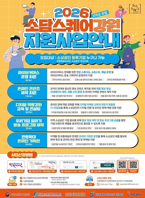 김만호 강원특별자치도 경제국장은 “지난 2022년부터 운영된 소담스퀘어 강원은 그간 많은 도내 소상공인의 온라인 안착을 돕는 검증된 디지털 거점으로 성장해 왔다”라고 언급하며, “최근 고유가·고물가로 경영 부담이 엄중한 상황인 만큼, 비용 부담 없는 전폭적인 지원을 통해 소상공인들이 이번 위기를 기회로 바꿀 수 있도록 가용한 모든 자원을 아낌없이 지원하겠다”라고 강조했다.