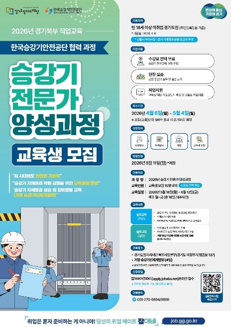 (중부시사신문) 경기도일자리재단은 승강기 전문 인력 양성을 통해 일자리 문제 해결과 지역경제 활성화를 추진하고자 ‘2026년 승강기 전문가 양성 과정’ 교육생을 모집한다고 21일 밝혔다.