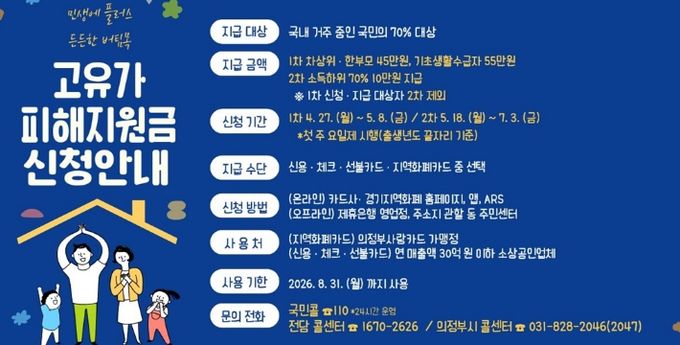(중부시사신문) 의정부시는 중동전쟁으로 촉발된 고유가‧고물가로 인한 국민 부담을 경감하고자 ‘고유가 피해지원금’ 신청을 4월 27일부터 접수한다.