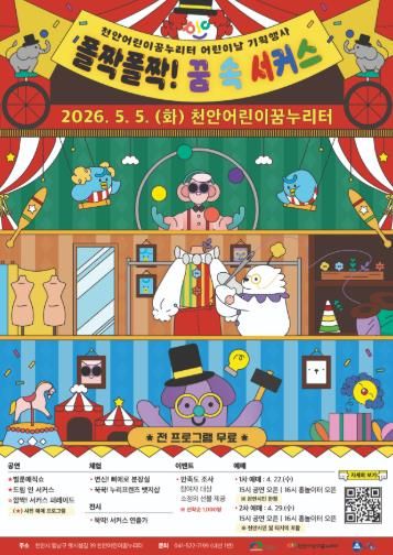(중부시사신문) 천안시가 설립하고 백석대학교 산학협력단이 위탁 운영하는 천안어린이꿈누리터가 오는 5월 5일 어린이날을 맞아 기획행사 '폴짝폴짝! 꿈 속 서커스'를 운영한다.