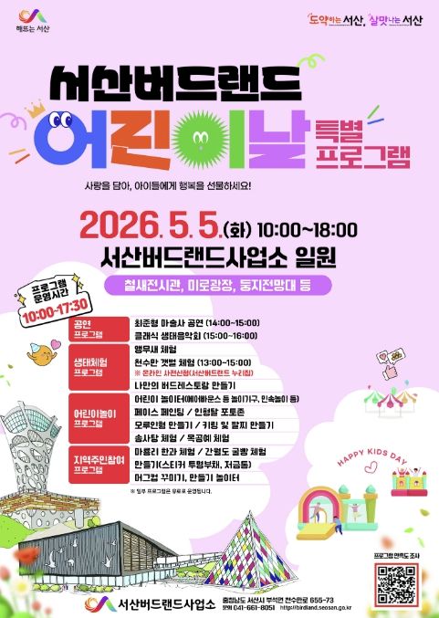 (중부시사신문) 충남 서산시는 오는 5월 5일 ‘서산버드랜드 어린이날 특별프로그램’을 운영한다고 밝혔다.