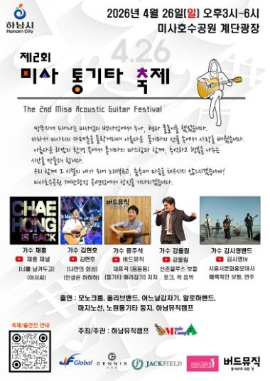 (중부시사신문) 하남시 지역 예술인들이 참여하는 '제2회 미사통기타축제'가 오는 4월 26일 오후 3시부터 미사호수공원 계단광장에서 개최된다.