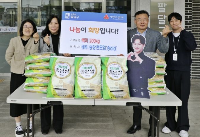 (중부시사신문) 수원시 팔달구은 배우 송강 팬모임 ‘송aid’로부터 송강 배우의 생일(4월 23일)을 기념한 사랑의 백미 200kg을 전달받아 관내 취약계층 지원에 나선다고 밝혔다.