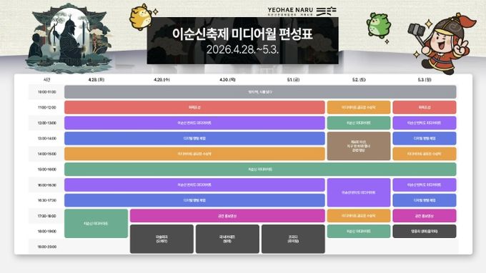 고영이 관광진흥과 과장은 “이순신축제 기간 동안 곡교천 행사와 함께 여해나루에서도 더욱 풍성한 즐길거리를 제공하기 위해 다양한 관광 콘텐츠와 프로그램을 기획했다”며 “앞으로도 아산에 머무를 수 있는 체류형 관광 활성화를 위해 지속적으로 노력하겠다”고 말했다.