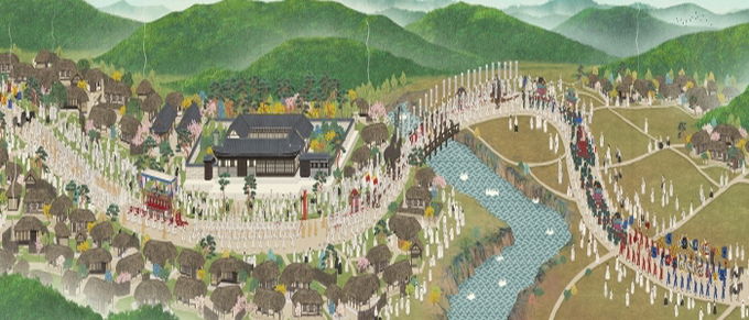 작품 속 행렬은 1599년 장례가 치러졌던 현충사 고택을 출발해 노제를 지낸 위충암과 초장지 금성산을 거쳐, 현재 묘소인 어라산 이충무공 묘에 이르는 여정을 담고 있다. 조선 수군과 부관들이 호위하고 백성들이 뒤따르는 천여 명 규모의 웅장한 행렬이 16세기 아산의 역사적 장면을 생생하게 재현한다.