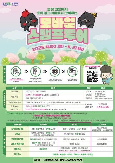 (중부시사신문) 남양주시는 역사·힐링·건강·체험을 결합한 ‘2026년 상반기 모바일 스탬프투어’를 오는 6월 21일까지 운영한다고 23일 밝혔다.