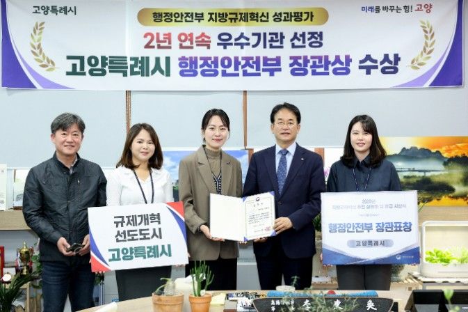 (중부시사신문) 고양특례시는 지난 22일 행정안전부 주관 ‘2025년 지방규제혁신 성과평가’에서 행정안전부 장관상을 수상하며 규제혁신 분야에서의 경쟁력을 다시 한번 입증했다. 또 이번 평가에 따른 재정 인센티브로 지난해 말 특별교부세 1억 원을 확보했다.
