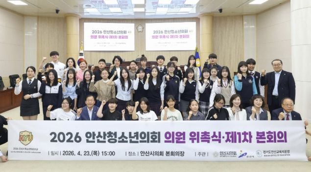 (중부시사신문) 안산청소년의회가 지난 23일 열린 ‘2026 안산청소년의회 의원 위촉식’과 ‘안산청소년의회 제1차 본회의’를 시작으로 본격적인 활동에 들어갔다.
