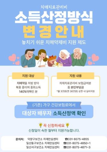 보건소 관계자는 “치료의 핵심인 꾸준한 약물 복용을 돕기 위해 기준이 완화된만큼 많은 어르신이 혜택을 받길 바란다”고 밝혔다.