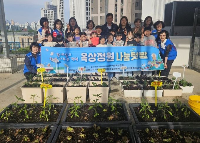 이번 사업은 행정복지센터 옥상을 활용한 주민 참여 도시농업 체업 활동이다. 이날 협의체 위원들과 아이들은 텃밭 화분에 상추, 고추, 가지 등 채소 모종을 심으며 첫 활동을 시작했다.