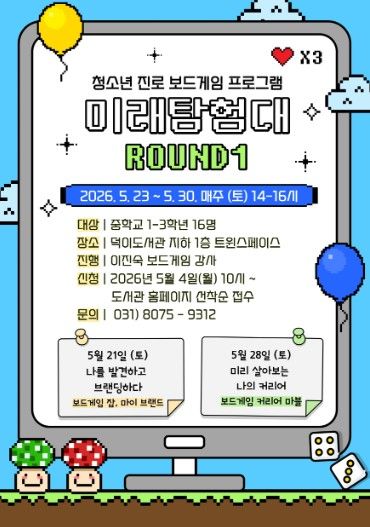 (중부시사신문) 고양특례시 덕이도서관은 청소년들이 보드게임을 통해 자신의 적성과 흥미를 발견하고 미래 진로를 설계할 수 있도록 돕는 ‘미래탐험대 ROUND1’을 운영한다고 24일 밝혔다.