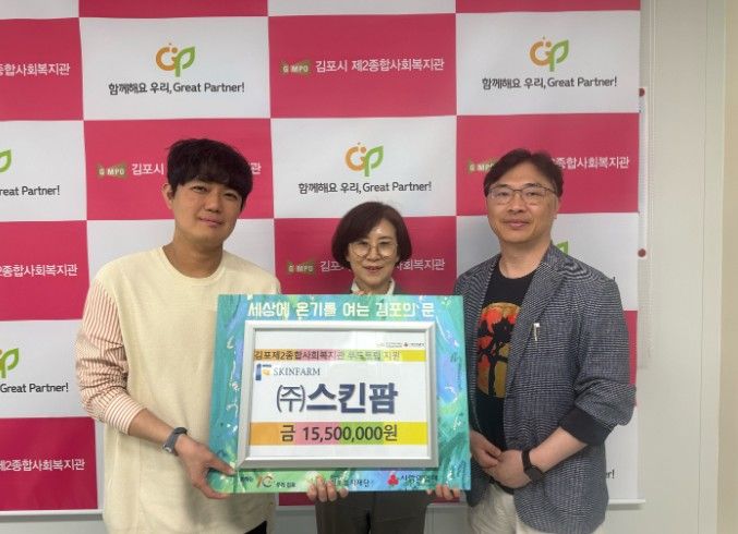 '끊임없이 꿈꾸는 스킨팜'이라는 슬로건을 토대로 지난 2021년 5월부터 현재까지 약 6천만원 상당을 꾸준히 김포복지재단에 기부하며 지역사회 아동청소년을 위한 나눔을 실천 해오고 있다. 특히 정기결연 아동청소년을 위한 기부를 지속적으로 추진하며, 지역내 도움이 필요한 아이들이 보다 안정된 환경에서 건강하게 성장할 수 있도록 따뜻한 마음을 전했다.