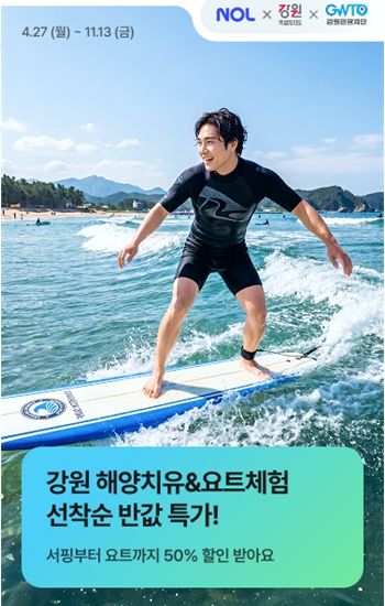 (중부시사신문) 강원특별자치도는 강원관광재단과 함께 동해안의 해양레저 관광을 재조명하고, 지역 관광산업에 새로운 활력을 불어넣기 위해 2026년 4월, ‘해양레저관광 할인 기획전’을 온라인 여행사를 통해 추진한다.