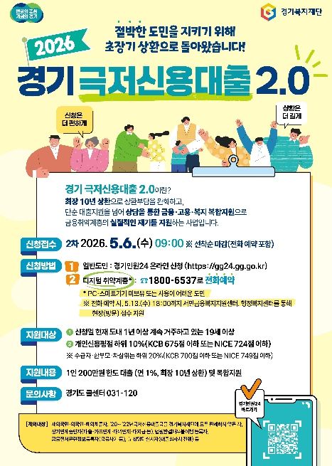 (중부시사신문) 경기도가 5월 6일 오전 9시부터 금융취약계층의 생활 안정을 지원하는 ‘경기 극저신용대출 2.0’ 2차 접수를 시작한다.