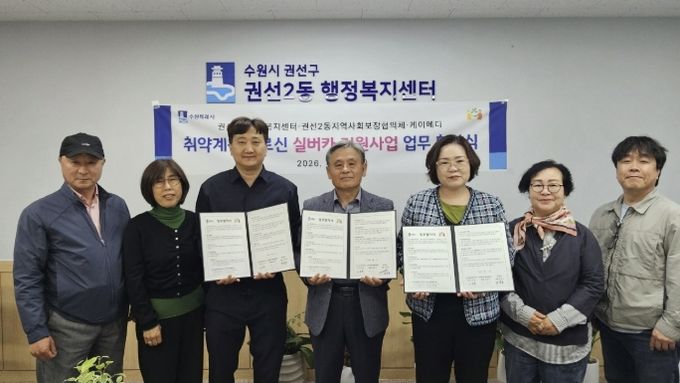 (중부시사신문) 수원시 권선구 권선2동은 지난 23일, 권선2동 지역사회보장협의체, 케이메디와 취약계층 어르신의 안전한 이동 지원과 삶의 질 향상을 위한 “실버카(보행보조기) 지원사업 업무협약(MOU)”을 체결했다.