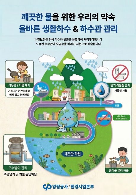 이성희 사장직무대행은 “깨끗한 환경을 유지하는 것은 우리 모두의 책임이며, 작은 실천이 모여 양평의 아름다운 자연을 지키는 큰 변화를 만든다”며, “올바른 생활하수 배출과 빗물받이 관리를 통해 자연과 수질을 보호하는 길에 군민 여러분의 적극적인 동참을 부탁드린다”고 강조했다.