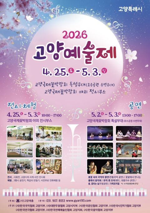 (중부시사신문) 고양특례시의 봄을 수놓는 지역 예술 축제 ‘2026 고양예술제’가 오는 5월 3일까지 고양국제꽃박람회 특설무대와 야외 전시부스에서 개최된다.