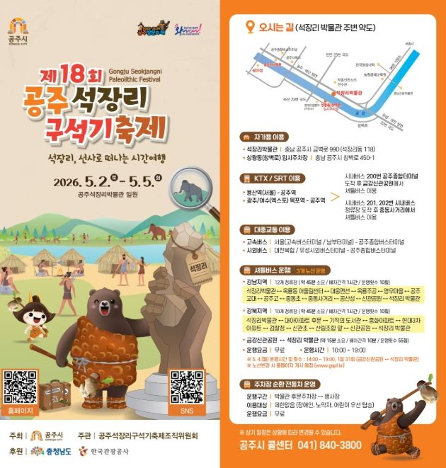 (중부시사신문) 공주시는 오는 5월 2일부터 5일까지 개최되는 ‘제18회 공주 석장리 구석기축제’를 앞두고, 관람객의 이동 편의를 높이기 위한 교통 대책을 마련하고 적극 홍보에 나섰다.