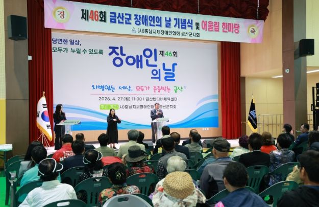 (중부시사신문) 금산군은 제46회 장애인의 날(4월 20일)을 기념해 지난 27일 금산군장애인복지관 일원에서 (사)충남지체장애인협회 금산군지회 주관으로 기념행사를 성황리에 개최했다.