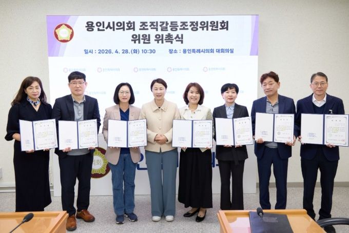 (중부시사신문) 용인특례시의회는 28일 대회의실에서 조직 내 갈등을 예방하고 합리적으로 조정하기 위한 조직갈등조정위원회 위원 위촉식을 개최했다.