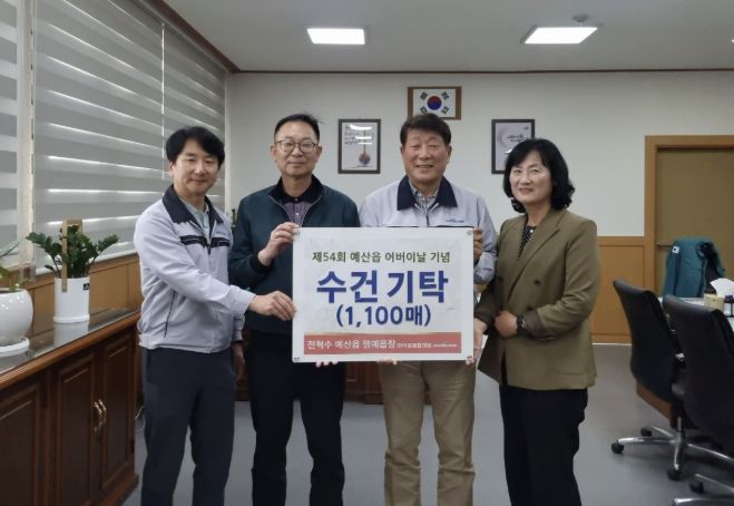 (중부시사신문) 예산군 예산읍은 제54회 어버이날을 앞두고 전혁수 명예읍장이 지역 어르신들을 위한 기념품으로 수건 1100장을 기탁했다고 밝혔다.