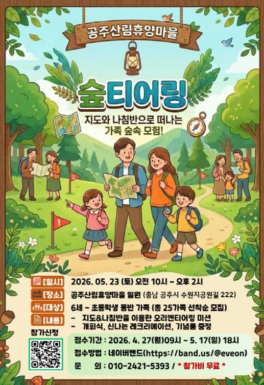 이번 행사는 공주산림휴양마을을 찾는 시민과 방문객에게 숲을 활용한 체험 기회를 제공하고, 가족 간 소통과 협력을 통해 특별한 추억을 만들 수 있도록 마련됐다.