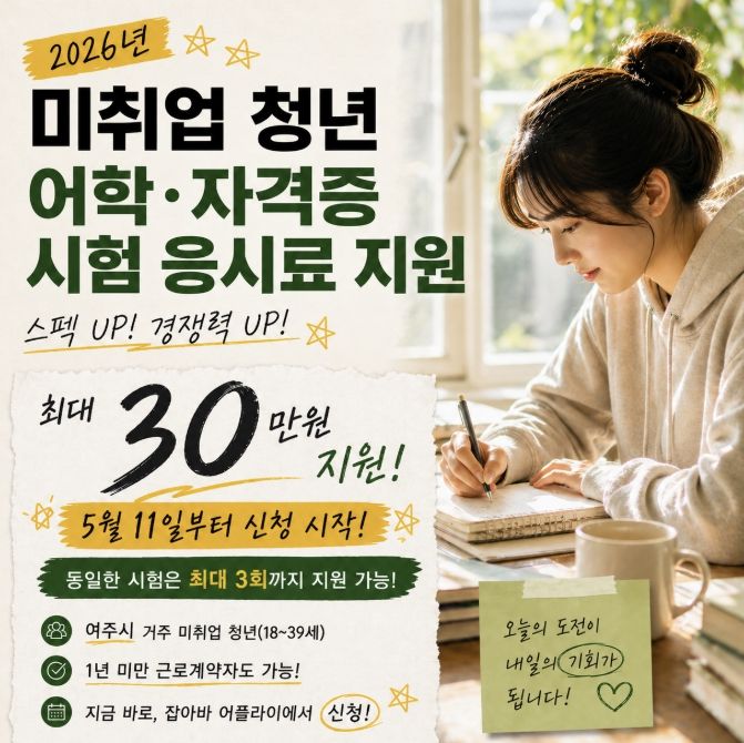 (중부시사신문) 여주시는 오는 5월 11일부터 미취업 청년에 어학·자격시험 응시료를 지원하는 ‘경기청년 역량강화 기회지원’ 사업 접수를 시작한다.