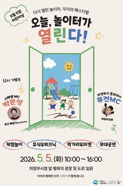 (중부시사신문) 의정부시는 제104회 어린이날을 맞아 5월 5일 오전 10시부터 오후 4시까지 의정부시청 앞 평화의 광장 및 도로 일원에서 ‘2026년 의정부시 어린이날 기념행사’를 개최한다.
