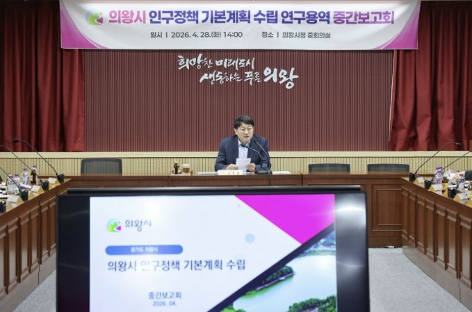(중부시사신문) 의왕시는 4월 28일 시청 중회의실에서 '인구정책 기본계획 수립 연구용역 중간보고회'를 개최하고, 의왕시 맞춤형 인구정책 방향을 논의했다.