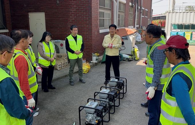 이번 점검에는 자율방재단원과 관계 공무원이 함께 참여해 양수기와 수중펌프 등 수방장비의 작동 상태를 확인하고, 실제 침수 상황을 가정한 시운전을 통해 현장 대응력을 점검했다.